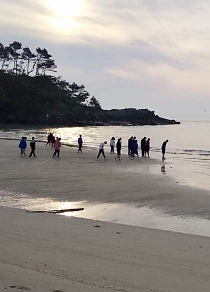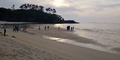 3年2組の生徒は、朝の散歩に海岸までやってきました。