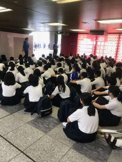 8時半に新大阪駅に集合しました。これから諸注意を聞いて、出発します。