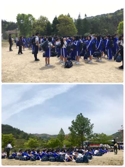 京都府立るり渓少年自然の家に到着しました。とても天気がよく風も気持ちがいいです。