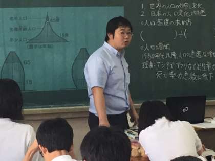 社会の授業です。世界の人口の特徴について学習しています。
