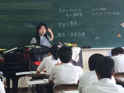 1年音楽の授業です。J.S.Bach作曲「小フーガ ト短調」の学習です。