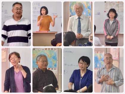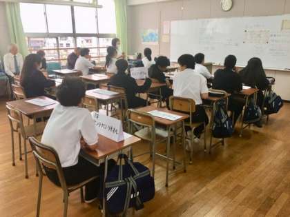 続いて、担当の先生方からも自己紹介をいただきました。授業力UPコラボレーターの西田先生は、皆さんが生まれる前から淀中学校に勤務されています。坪内先生は4カ国語で挨拶されました。中山先生は皆さんの大先輩!淀中学校の卒業生です。