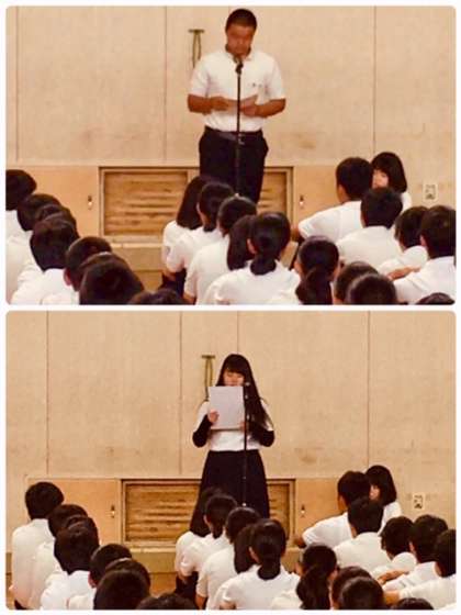 校長先生から、先週の授業を受けていふ様子について話がありました。特に3年生の真剣に授業に取り組んでいる姿が素晴らしいと褒めていただきました。今週末の中間テストに向けて、がんばりましょう。