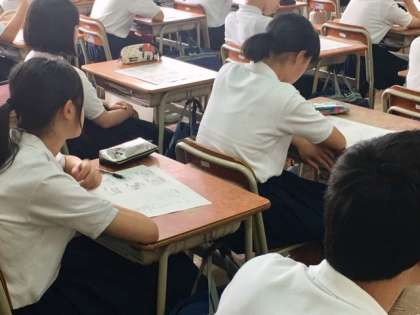 3年生は進路学習を行いました。大型ディスプレイにパワーポイントで、進路決定の過程を丁寧に教えてくださっていました。朝から中間テストが返却され、どの顔も真剣そのものです。