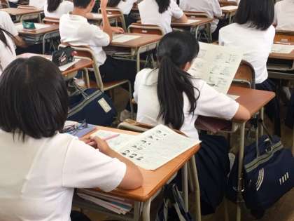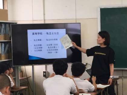 2組では、高校入試について、専願、併願、単願など受験方法の用語や、私立高校、公立高校の違いについて、指導してくださいました。