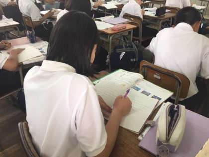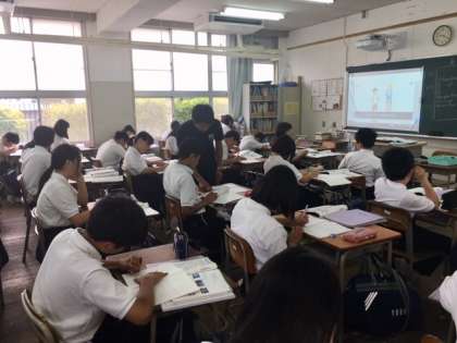 1年生英語の授業です。中間テストが終わったところですが、ずいぶんレベルアップした授業内容です。生徒たちも先生の指導にしっかりとついていっていました。