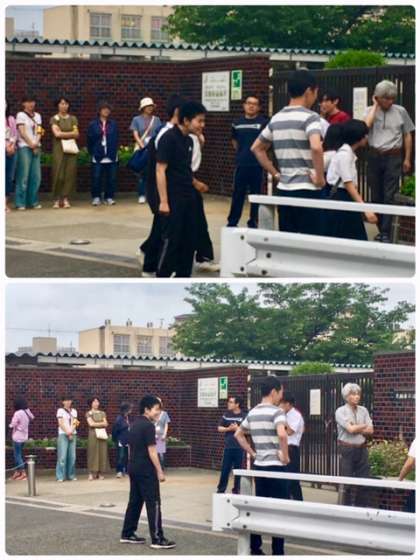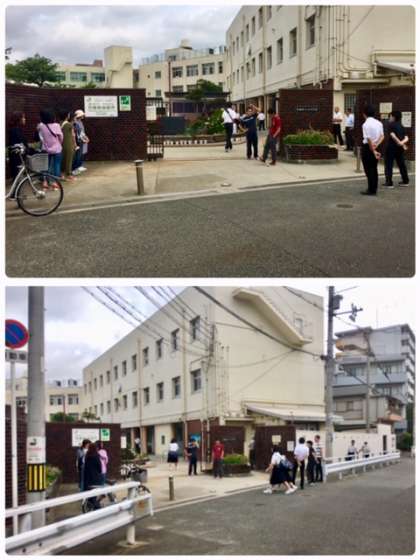 PTA見守りデーです。淀中学校正門前には大和田地区の保護者の方々が参加してくださいました。教職員と共に見守っていただきありがとうございます。