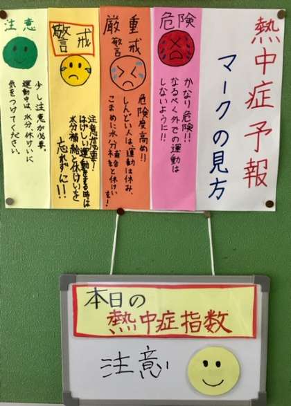 今年も、校内の各所に熱中症の注意喚起をする掲示板が貼られています。