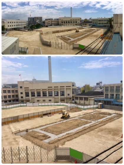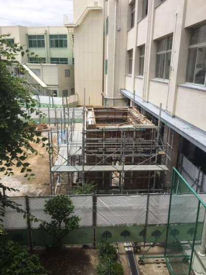 また、新給茶室の建設もコンクリートの流し込みが行われました。少しずつ新校舎の建設が進みます。