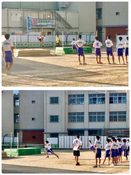顧問の田中翔先生が見本で背面跳びを見せてくださいました。陸上部員たちからは大きな拍手が湧きました。