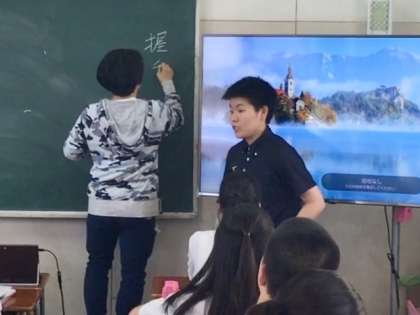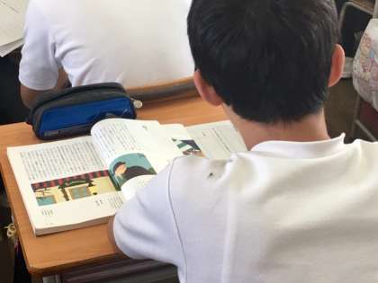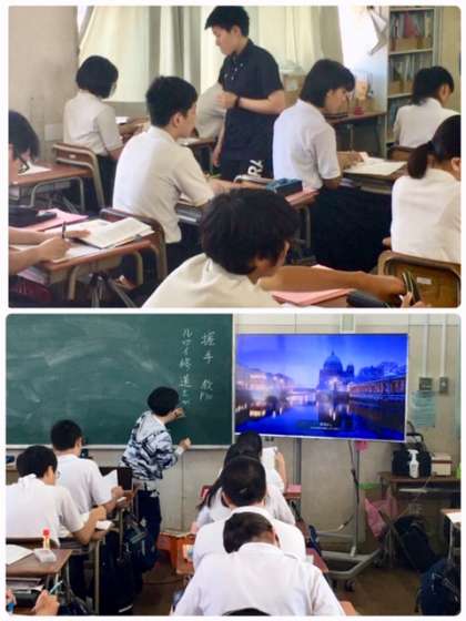 3年4組の国語の授業です。ティームティーチングで授業を行っています。