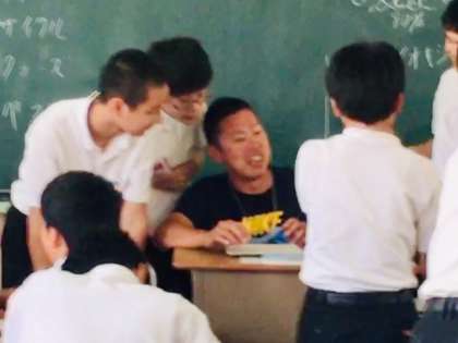 運動場では厳しい田中先生も教室の中では、生徒に慕われていました。