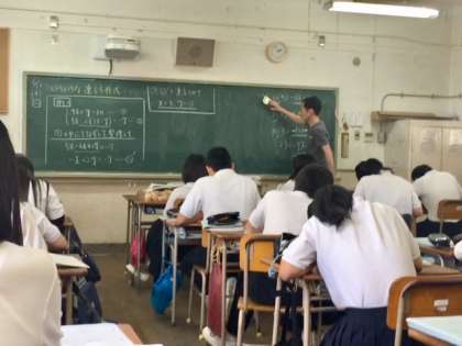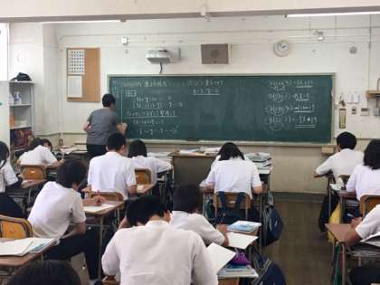 2年1組の数学の授業です。とても集中して授業を受けていました。期末テストに向けて頑張れ!