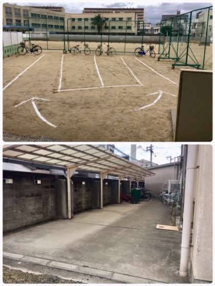 止むを得ず、自転車で来られる方は正門側に駐輪スペースを用意しました。譲り合ってご利用ください。