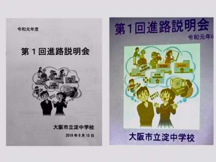 多目的室で進路説明会を開催しました。80名を越える保護者の皆さんが参加いただいています。