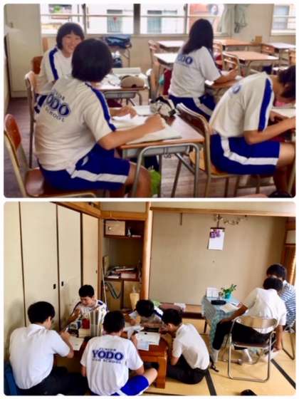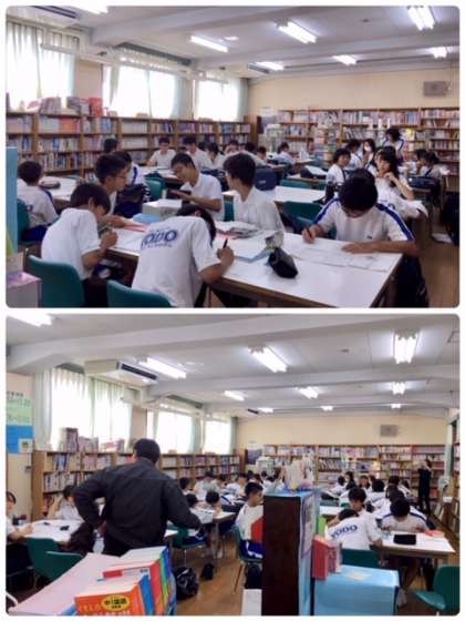 今日も9時前からたくさん生徒がやって来ました。図書室がいっぱいになり、和室と教室も開放しました。