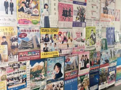 3年校舎の廊下には、数え切れないほどの高等学校等のポスターが掲示されています。多くの学校では、オープンスクールや体験授業などを設定しています。