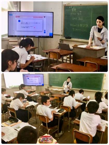 2教室に分かれて、習熟度別少人数授業で学習しています。