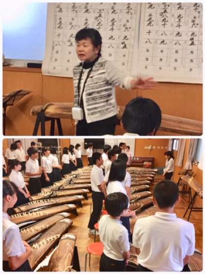 3年生が箏曲の授業を受けています。
