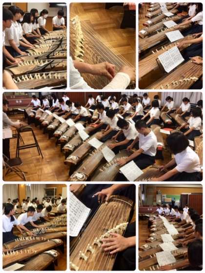 それぞれの席に着くと、楽譜を見ながら箏曲を演奏する生徒もいます。さすが3年目になると知識や技量が高まった生徒がいます。