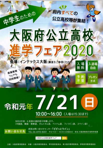 「大阪府公立高等学校進学フェア2020」が開催されます。