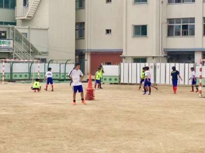 同じく、学校のグランドではサッカー部が汗をかいて練習しています。
