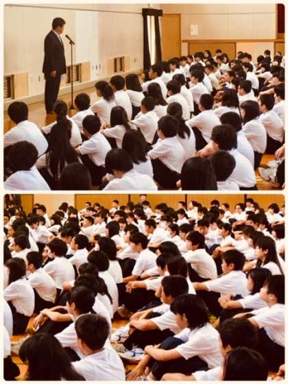 終業式後の全校集会では、生徒指導主事の増田先生から、「おしかった!残念やった!」何でしょう?と話し始められました。生徒に問うと「カバン0」と回答がありました。全校集会に遅れてカバンを持ってくる生徒が(遅れて来る)0になりそうだった、可能性が十分あると二学期の目当てを話してくださいました。
