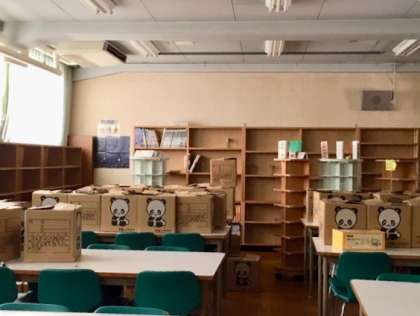 学活終了後、図書委員が集まって本の箱詰め作業を行いました。