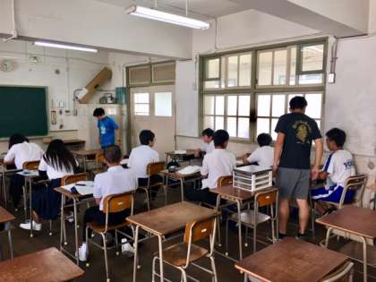 暑い夏ですが、教室はクーラーで快適です。各学年明日も学習会があります。学校に来て勉強しましょう。待ってます。