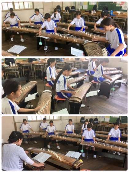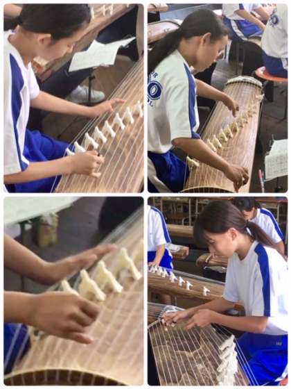 真夏日の暑さの中、校舎からお琴のいい音が聞こえてきます。音楽部が箏曲の練習をしています。先週、吹奏楽コンクールがあったばかりですが、いつのまにか箏の練習をしていたのか?音楽部は箏曲の演奏にもがんばっています。