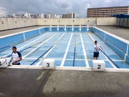 いよいよ、来週から2学期が始まります。今日は朝からプール清掃です。