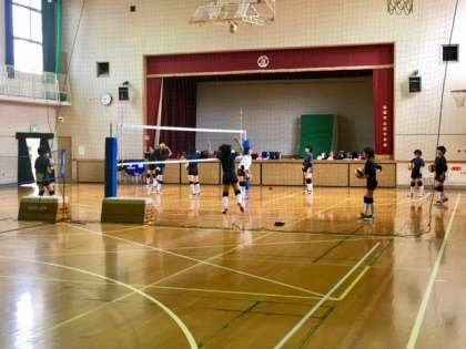 体育館では、バレーボール部とバドミントン部が練習していました。