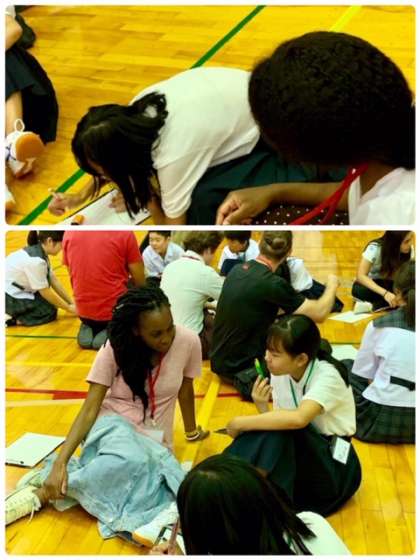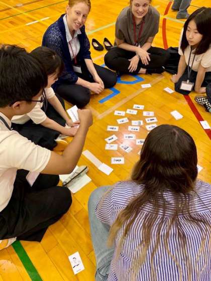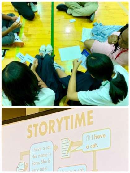 英語で理由を考えたり、お話の続きを考えています。わからなくても大丈夫、先生がわかりやすい英語で、ゆっくりと説明して下さいます。