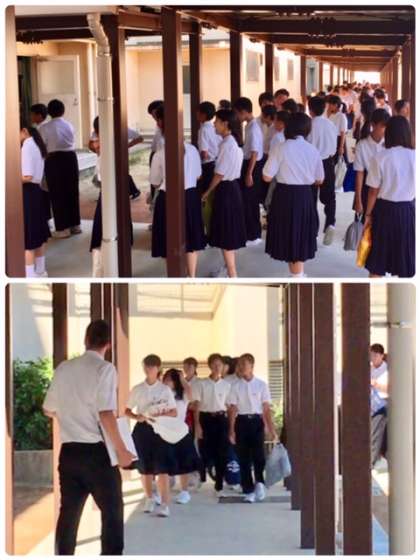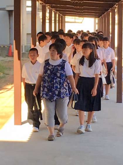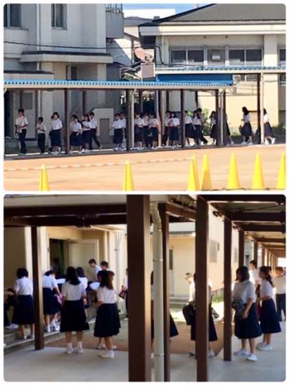 始業式・全校集会が始まります。体育館や第5校舎への移動は、新しく出来た渡り廊下を使用します。
