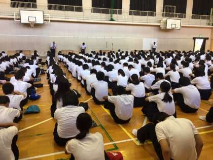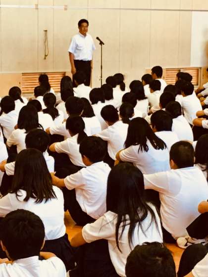 昨年9月4日に大きな被害をもたらした台風21号がありました。また、校長先生は夏休み中に宮城県気仙の気仙沼市東日本大震災遺構(旧気仙沼向洋高等学校跡)に行って見てきた話をしました。これらの自然の猛威には勝つことはできません。私たちに出来ることは率先して避難することぐらいしか術はありません。そのために、日頃からしっかり話を聞いて、正しい情報を見極め、率先して行動することが、かけがえのない命を守ることです。日頃の生活の中で意識を持ちましょう。