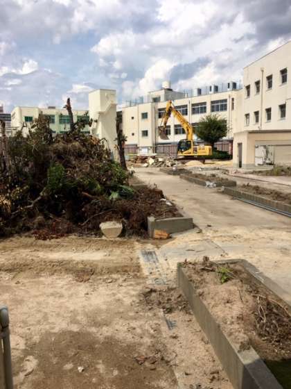 池の周りの渡り廊下も解体されて樹々も切られました。まもなく校舎の姿が見られなくなるのは寂しいですね。
