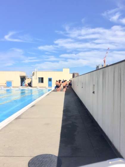 2年生最期の水泳の授業です。平泳ぎ50mとクロール25mのタイム計測を行いました。