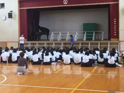 今日は、はじめての練習で舞台に並ぶやり方を練習していました。