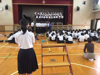昨年の2年生の学年合唱も素晴らしかったのが目に浮かびます。先輩たちを追い抜いて感動を呼ぶ歌声を体育館に響かせてください。