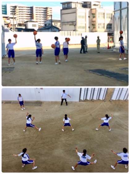 第2グラウンドやプレハブ校舎のそばでは、男子バスケットボール部、陸上部、女子バスケットボール部が活動をしています。