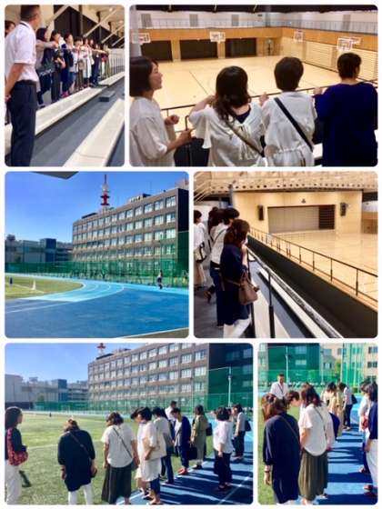 お忙しい中、教頭先生に学校の概要をお話しくださいました。続いて学校施設、アリーナ、室内プール、グラウンドなどをご案内いただきました。保護者の方々からは、豪華な施設にため息が漏れてました。ありがとうございました。