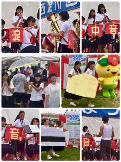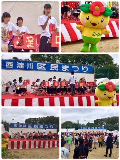 昨日からの台風の影響による雨が心配されていましたが、本日、9月21日(土)西淀公園で開催された「第46回西淀川区民まつり」に音楽部が出演しました。