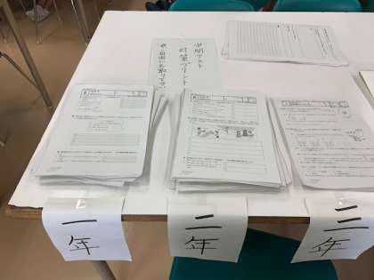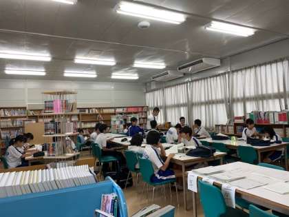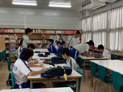 たくさんの生徒が参加しました。中間テスト対策プリントの予備も少し残っています。欲しい人は、図書室にありますので、自由に持ち帰って下さい。月曜日から放課後も図書館開放を行うますので、テスト対策に来て下さい。