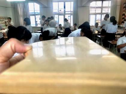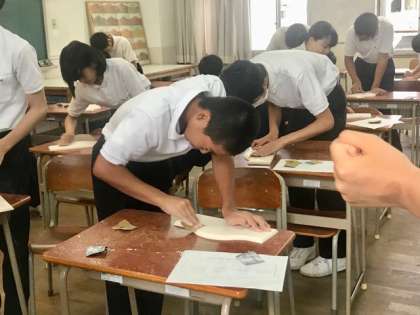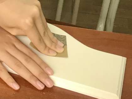 木彫用の板の表面処理をしています。まるで磨き職人さんのように頑張ります。