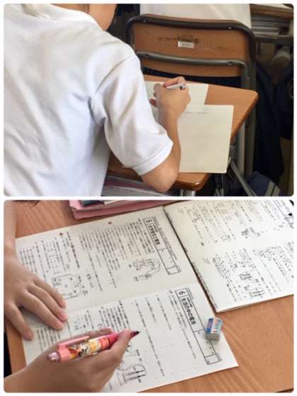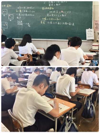 3年4組理科の授業です。明日からの中間テストに向けて、総復習をしています。