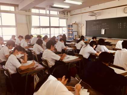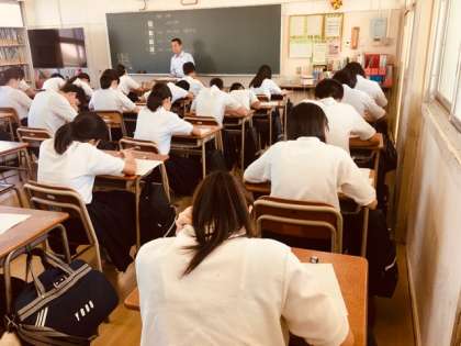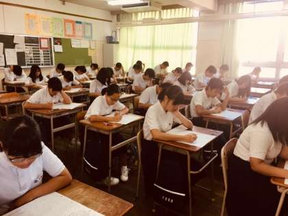 今日・明日は中間テストです。1時間目英語のテストです。どの顔も真剣です。