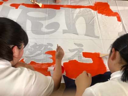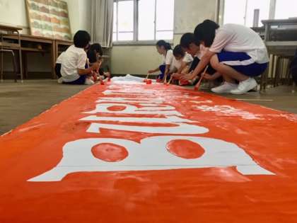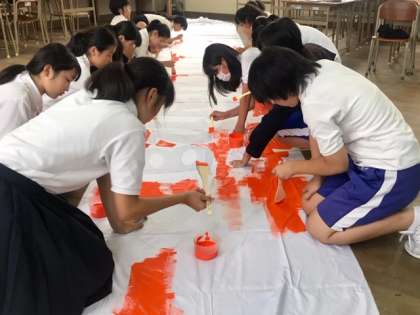 美術部 体育大会 横断幕作成開始しました。3学年の部員全員で取り掛かっているので進みが早いです。