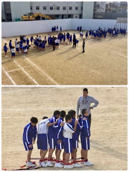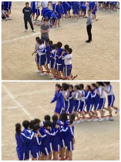いよいよ、体育大会が明日開催される予定です。今朝も、運動場では2年生の生徒が体育大会学年種目の朝練をしています。元気な声がグラウンドに響いています。