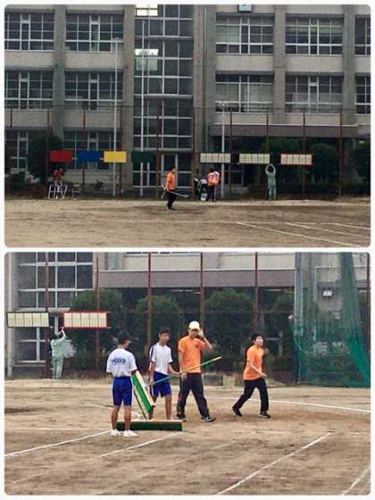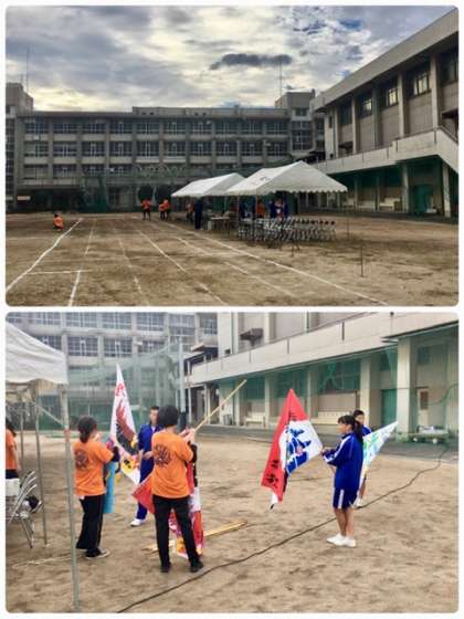 西淀川高等学校グラウンドで会場設営を急ピッチで行なっています。
