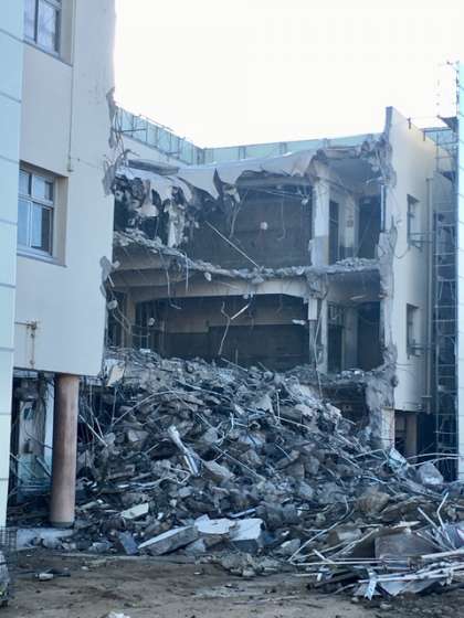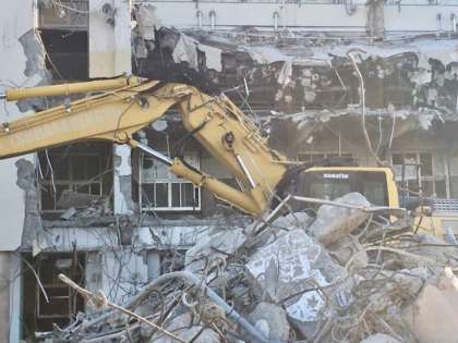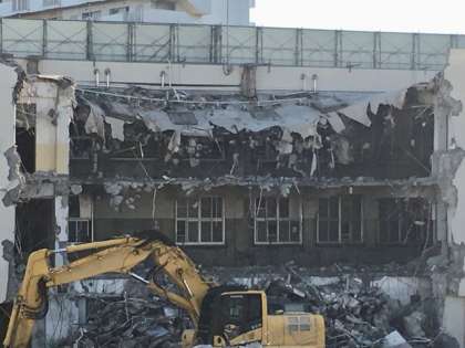 月曜日の夕方は強い雨が降って、確認できなかったのですが、校舎建て替え工事に伴う、第1校舎の解体工事が進みました。